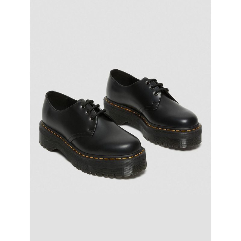 Our classic 1461 shoe has hit new heights. Built on our highest platform to date, our 1461 Quad has been given an empowering rework. The shoes are built from Polished Smooth leather and welted in place with our unmistakable yellow stitching.