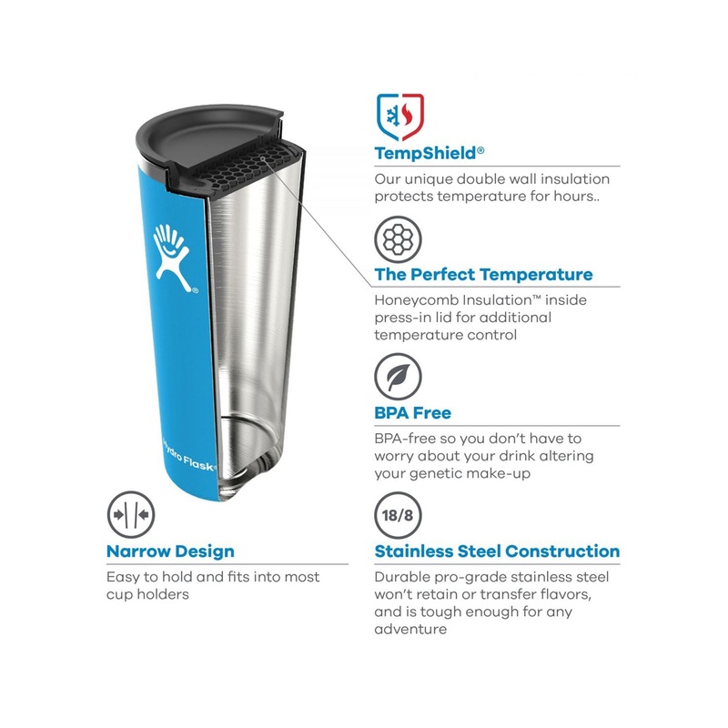 Our 16 oz Tumbler with TempShield double wall vacuum insulation is the perfect size to keep your iced coffee cold for up to 24 hours. When its time to unwind with an afternoon chai tea, itll stay piping hot for up to 6 hours. The narrow design feels comfortable to hold, and the insulated lid ensures your favorite drink stays just the way you like it.Narrow, intuitive design is comfortable and easy to holdplus it fits in most cupholders.Press-in lid features Honeycomb Insulation for additional temperature control and an opening for easy sips. A splash-resistant way to transport your beverage.