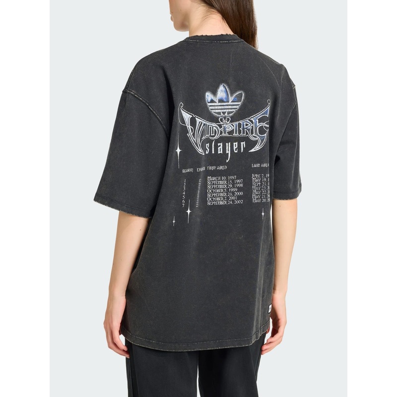 This adidas tee is a must-have for ’90s TV fans. It celebrates the iconic series “Buffy the Vampire Slayer” with graphics on the front and back. The loose shape and soft cotton build keep the look and feel casual. Nostalgic and full of attitude, this t-shirt lets you represent your favorite vampire slayer in style.