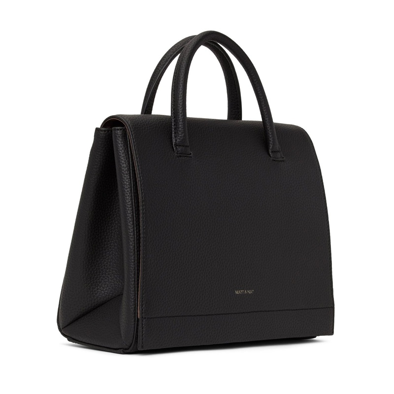 Satchel with double handles and flap closure. Comes with a detachable and adjustable crossbody strap.
