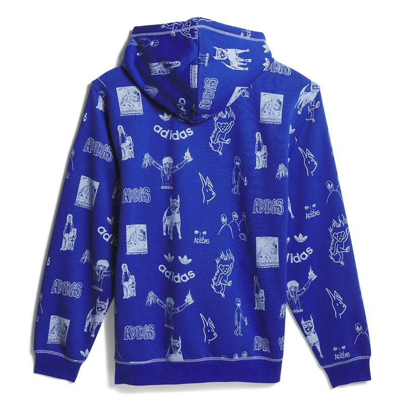 With constant creativity and an eye for the moment, Jason Dill makes every impulse iconic. The Dill Print hoodie creates a pastiche of his signature drawings with a bold, allover print that recalls the sketchbooks where it all began. The cotton in this product has been sourced through Better Cotton. Better Cotton is sourced via a chain of custody model called mass balance. This means that Better Cotton is not physically traceable to end products. Find out more here: https://bettercotton.org/who-we-are/our-logo/