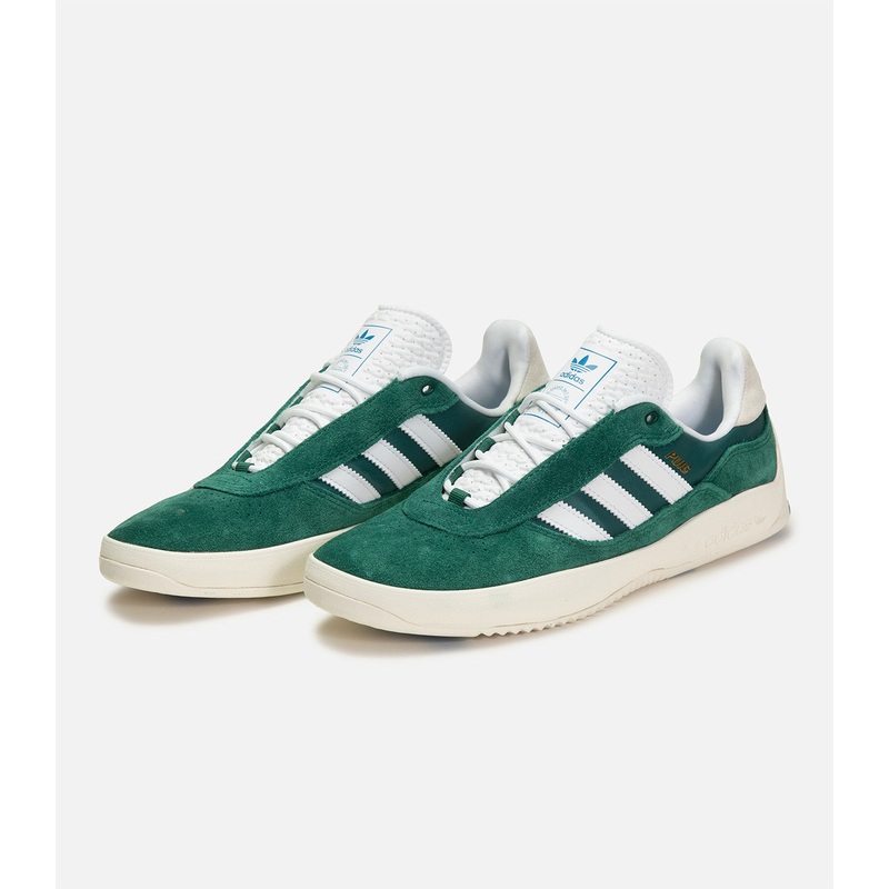Suede upper with a high grade EVA midsole, molded Adiprene sock liner,reinforced Adituff toebox, and awhite rubber outsole.