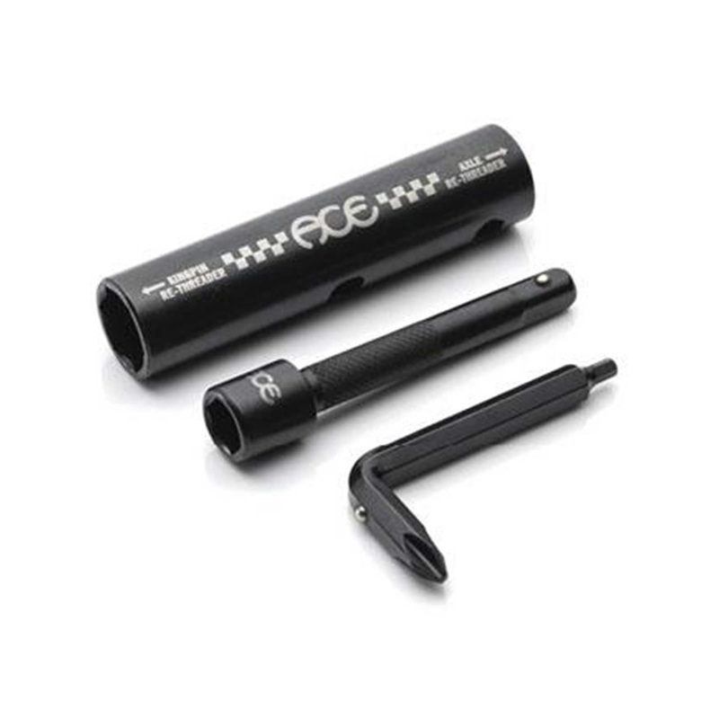 Redefining the use of a skate tool. Even smaller in size than our Classic tool. Recessed into the wheel and truck wrenches are hardened steel re-threaders to easily tune your trucks up anywhere. Knurling on the handle mounting hardware piece ensures ease of use and in a pinch can be used to file your griptape around the edge of your board. Check-ball engagement mechanism on the Phillips/Allen key and mounting hardware tool prevents loss.