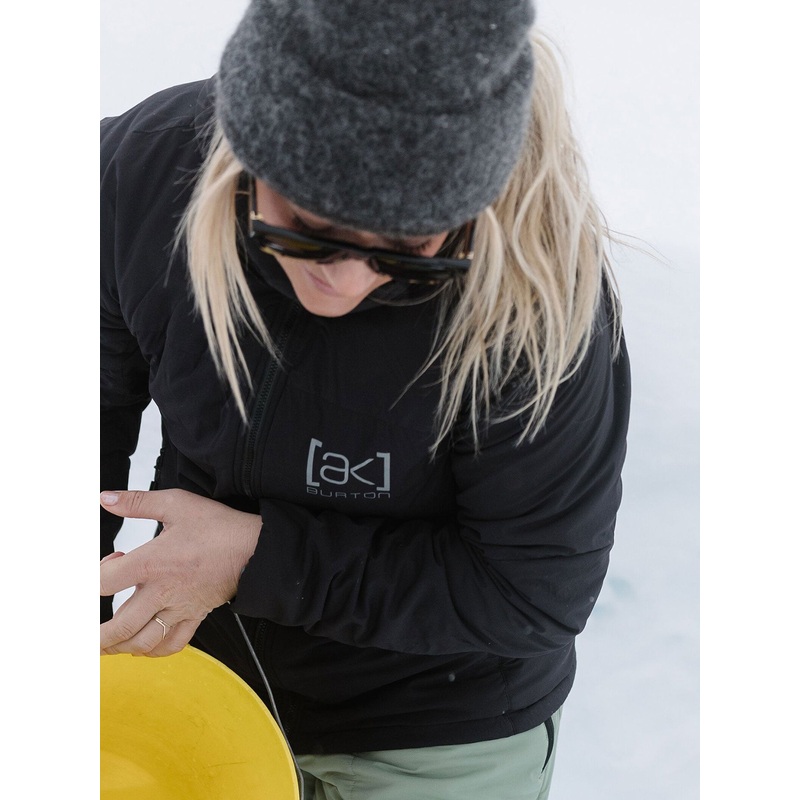 The women’s Burton [ak] Helium Hooded Stretch Insulated Jacket delivers breathable warmth in a lightweight, pack-friendly design for backcountry missions. Its stretch fabric lets you move naturally while keeping things light and breathable. It’s the midweight layer you can wear on the uptrack when it’s cool and breezy or under your shell to stay warm on the descent. When the sun shines and the temps rise, it packs into its own pocket for easy stowing.