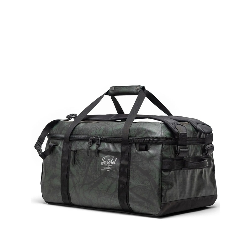 Introducing Herschel Outdoor Equipment. Engineered with custom All Season fabric and an intuitive design, this duffle features a large main compartment and a three-point carrying system. With modular connectivity, it seamlessly attaches to our roller bags.