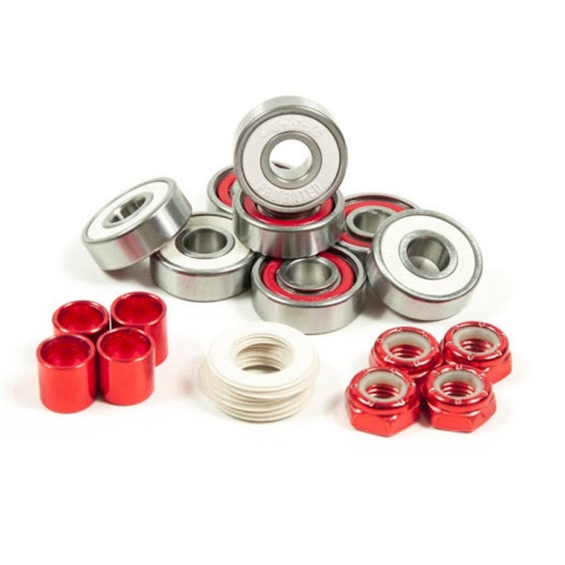 Set of Eight Andale Swiss Pro Rated Bearings in a tin that also includes spare shields, bearing spacers and truck axle nuts.