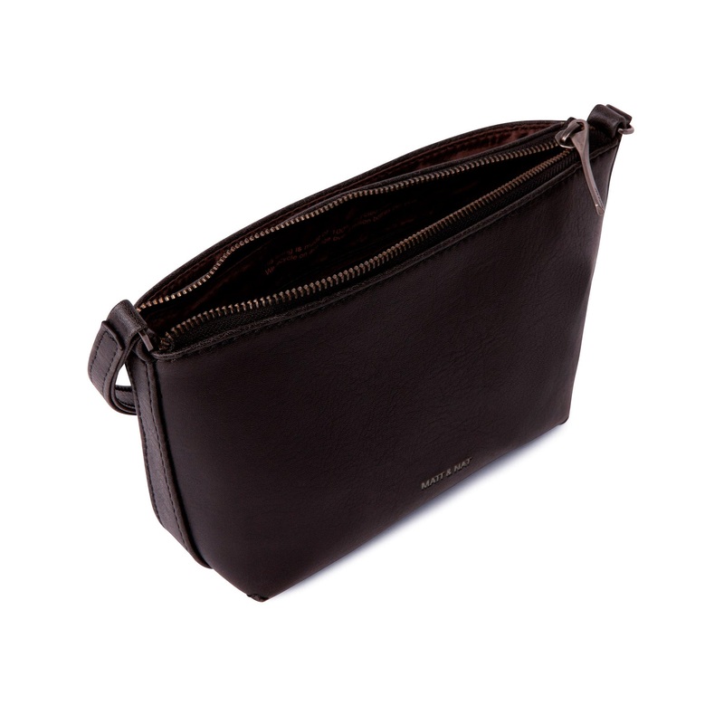 Crossbody bag with an adjustable strap, zipper closure at the main compartment, and an exterior back slip pocket with a press snap closure.