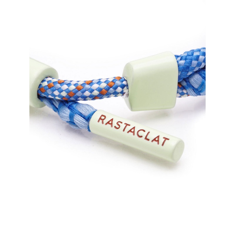 Youre not seeing things; the Azure Sky is a multi-colored, multi-patterned braided bracelet featuring an optical illusion effect, enamel hardware and contrast emblems.