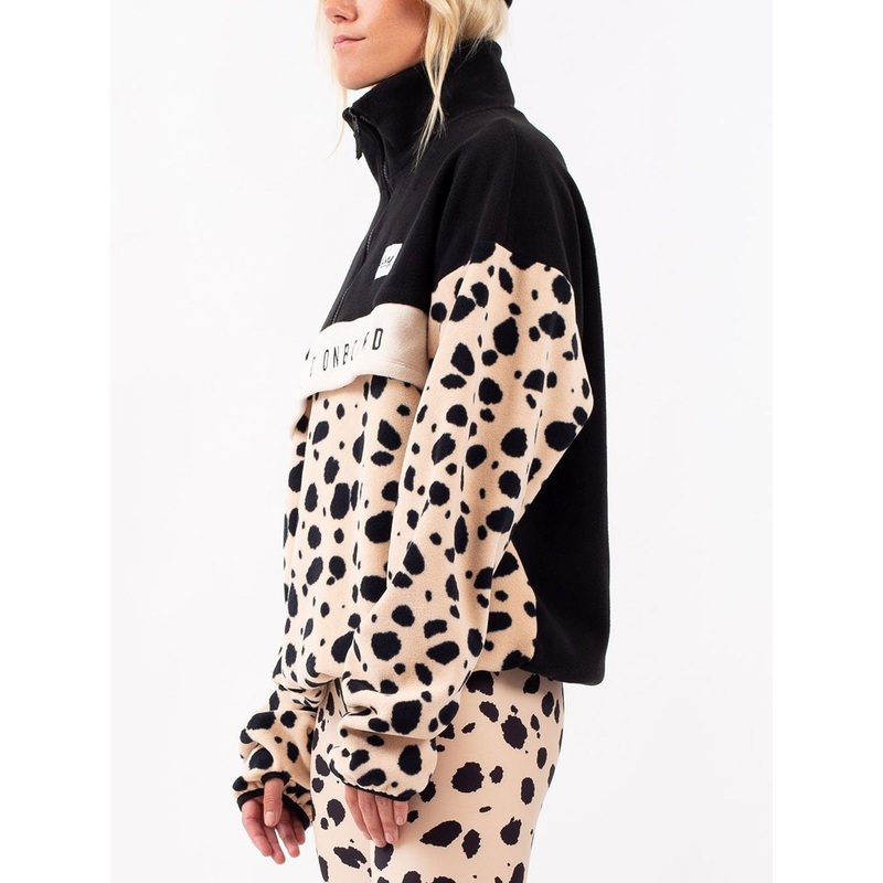 A comfortable soft fleece in a slightly oversized fit for a bold look, in a beige cheetah print. The warm collar can be opened and closed thanks to the YKK zipper, as well as the spacious front pocket.