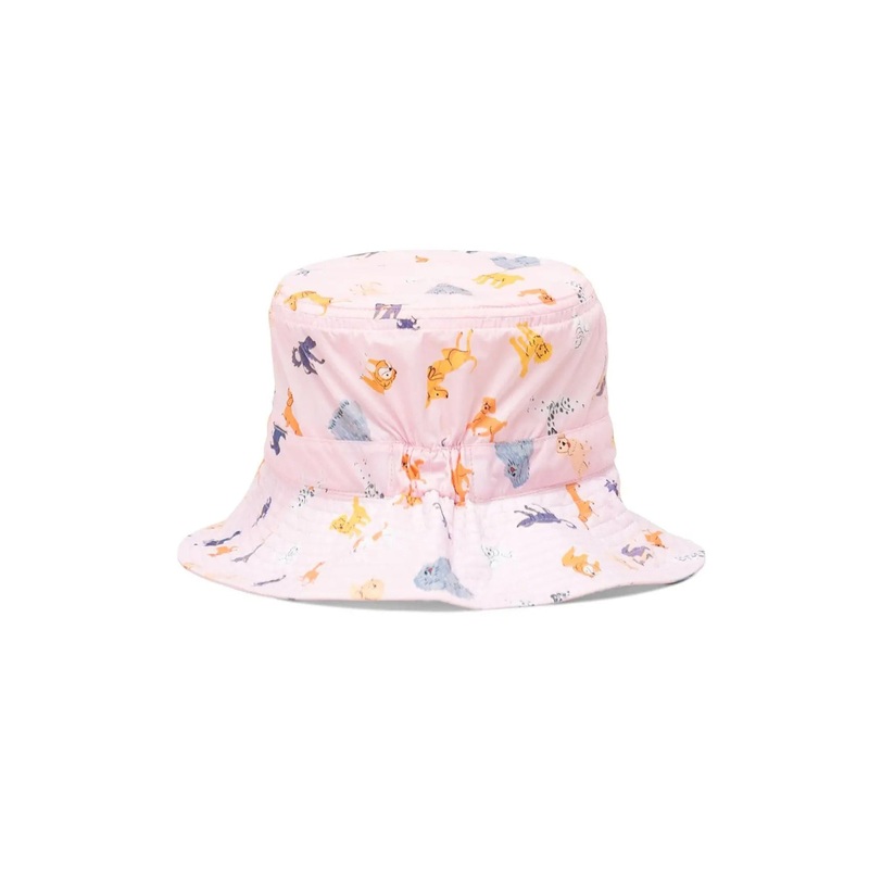 A warm weather essential, sized for children 2 4 years old. This bucket hat is made with a detachable self-fastening strap and UV protective coating to shield their face from the sun.