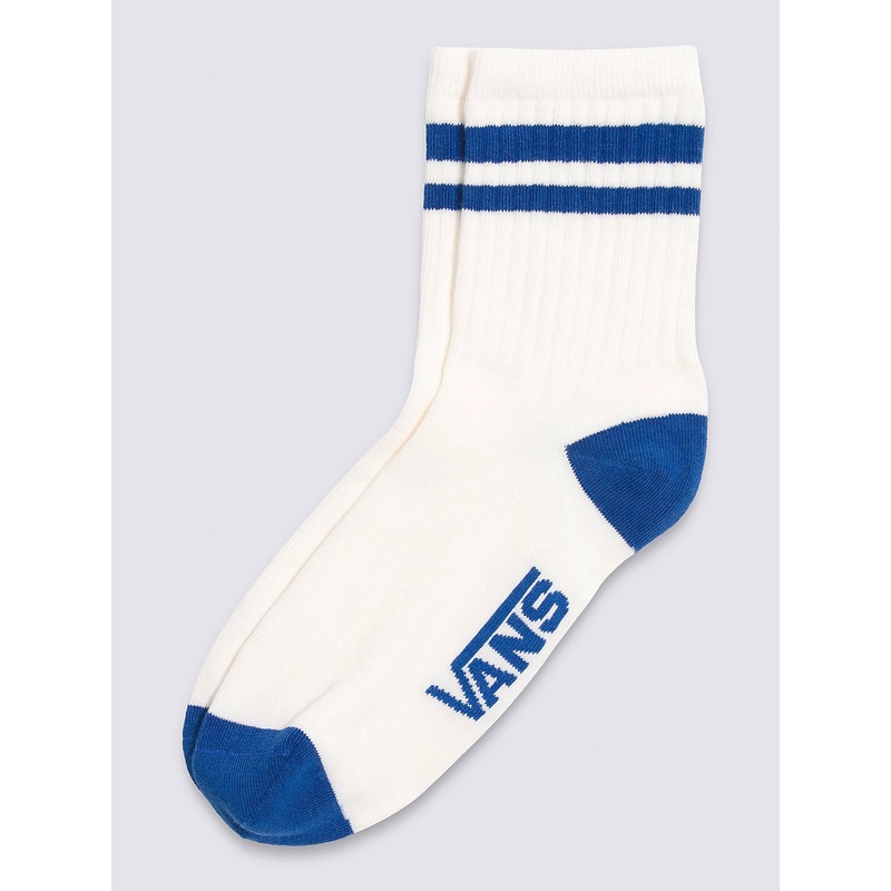 The Bergman Half Crew Sock is a thin rib-knit sock in a half crew height, featuring jacquard stripes with a Vans logo on the sole.