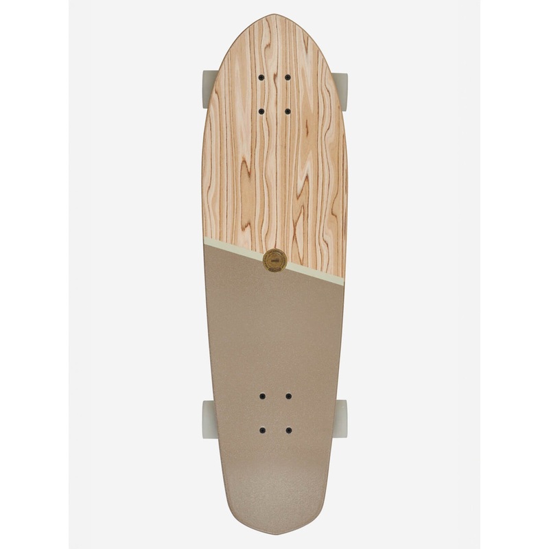 Medium length diamond tail cruiserwith built-in bottle opener and soft conical wheels.The Big Blazer in size 32″ colorway Olivewood/Stone features a deck constructed from Olivewood + Resin-7 hard rock maple with Mellow concave with kicktail. It also has a 6.0″ Tensor alloy trucks and 62mm 78a Conical Cruiser wheels with Clear broadcast grip and Embedded Metal badge.