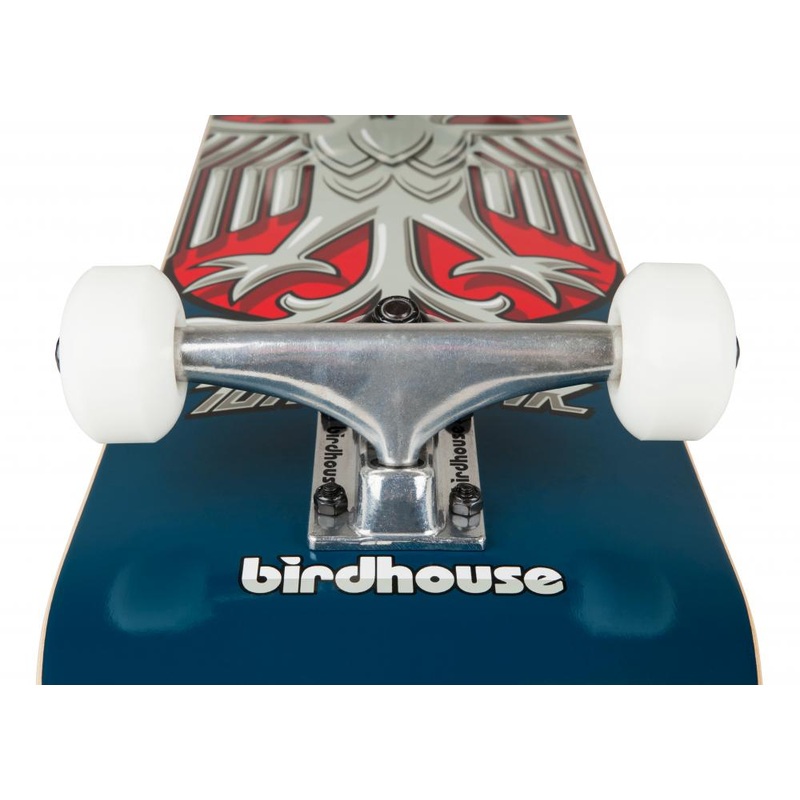 This is the Birdhouse Stage 1 Hawk Shield Blue Skateboard which measures 8.0″ wide by 31.5″ long. Birdhouse complete skateboards come in a range of levels with stage 1 being the entry point and working up to stage 3 at the top. Stage 1 skateboards are ideal for getting started with and learning the basics of skateboarding.