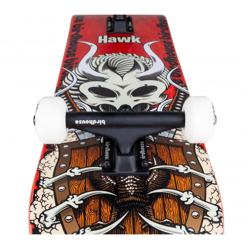 This is the Birdhouse Stage 3 Hawk Gladiator Skateboard which measures 8.125″ wide by 31.5″ long. Birdhouse complete skateboards come in a range of levels with stage 1 being the entry point and working up to stage 3 at the top.