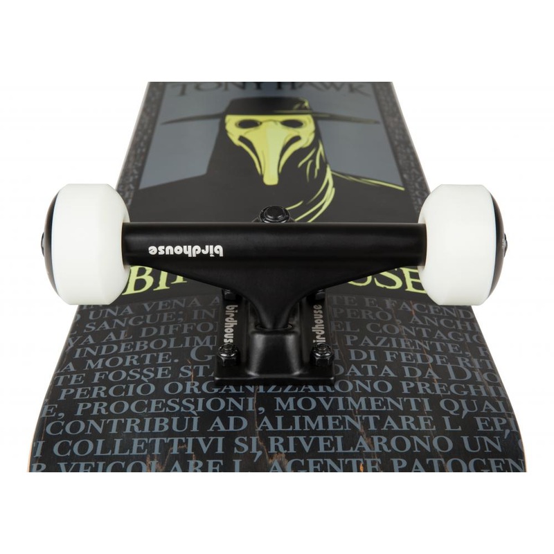 This is the Birdhouse Stage 3 Plague Doctor Black Skateboard which measures 8.0″ wide by 31.5″ long. Birdhouse complete skateboards come in a range of levels with stage 1 being the entry point and working up to stage 3 at the top.