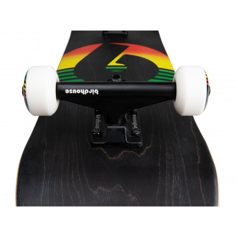 This is the Birdhouse Stage 3 Sunset Rasta Skateboard which measures 7.75″ wide by 31″ long. Birdhouse complete skateboards come in a range of levels with stage 1 being the entry point and working up to stage 3 at the top.