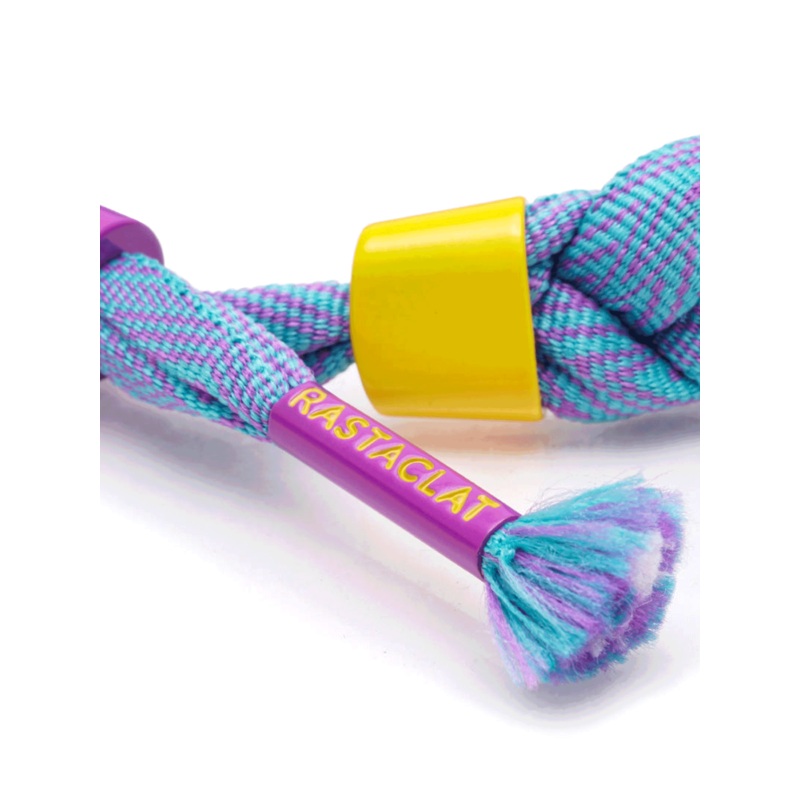 A summery take on the handcrafted movement, Blue Dream is a braided bracelet featuring a two-tone blue and purple colorway, frayed tassels, and enamel hardware with contrast emblems.