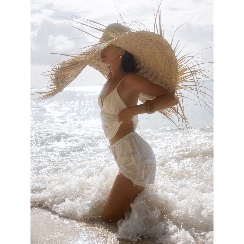 Avec sa broderie anglaise en haut triangle, le Haut Bord de mer voque les escapades