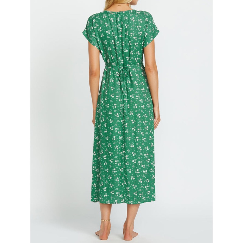 Drift into a breezy summer day in Our Billabong lightweight, body-skimming midi dress. The flowy viscose moss crepe hugs your body in an effortless, flattering cut with dolman sleeves, V-neckline and self-tie waist. Just add sandals and go. Featured here in the Island Green colorway.