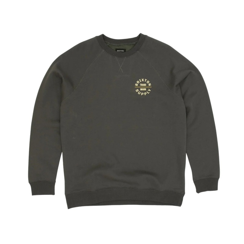 Brixton Oath V Crew Sweatshirt in Evergreen is a standard fit, cotton blend pullover, an elevated go to for any day.