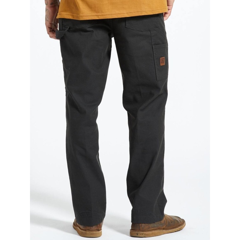 Durable, flexible with room to move, the Builders Carpenter Stretch Pants are a true workwear staple. Theyre built with our custom stretch canvas made from REPREVE recycled polyester derived from plastic bottles. Reinforced knees will stand the test of time, and a bottom vent will prevent any dirt collecting if the first layer does wear through. Keep your phone separate in its own pocket on the left thigh, easily accessible from a seated position. Finished with a water-resistant coating and reinforced seams.