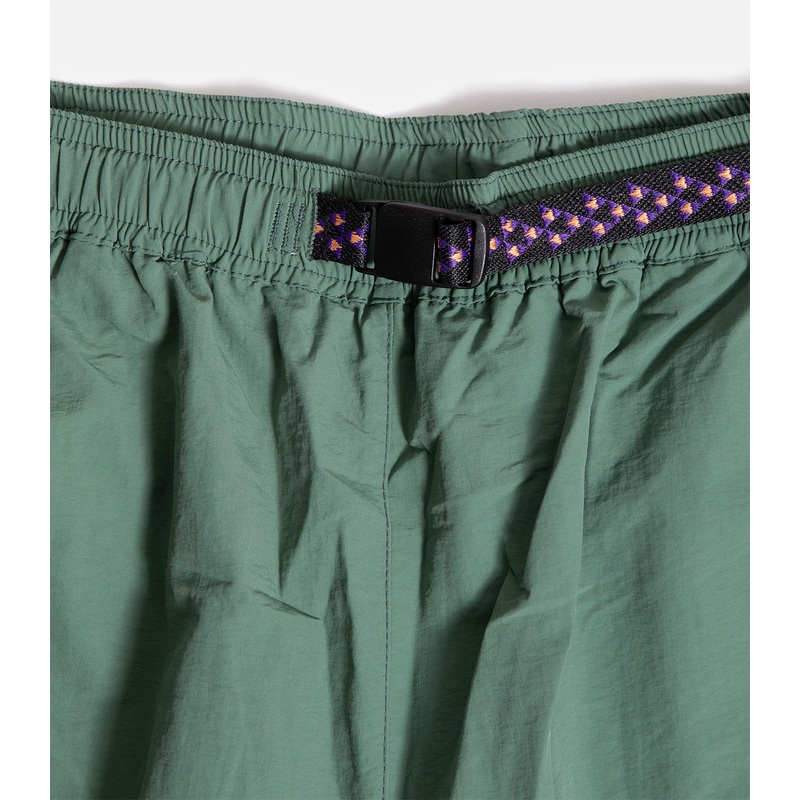 100% nylon shorts with side slash pockets, woven tape belt with buckle closure and a mesh lining.