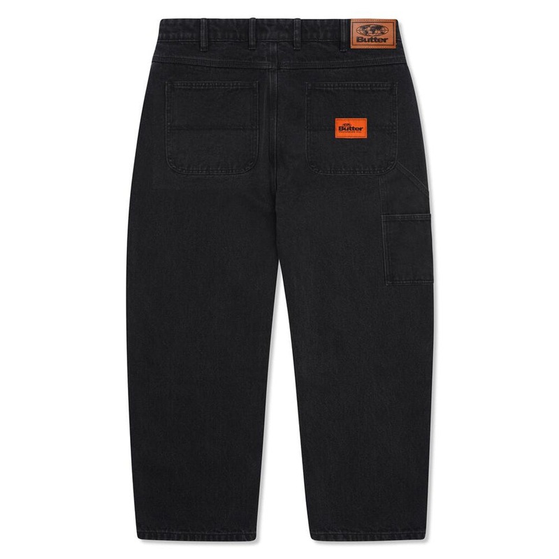 100% Cotton Ultra Baggy Fit Denim Jeans With Slight Taper, Double Knee, Utility Pockets With Hammer Loop On Side, Two Leg Lengths, Embroidery On Front Coin Pocket, Patch Pockets On Back With Woven Label, Belt Loops With Internal Drawstring On Waist Band.