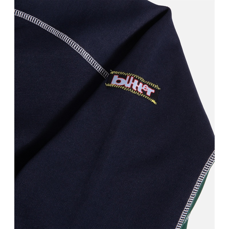 Full zip track jacket with a woven label on the upper left sleeve.