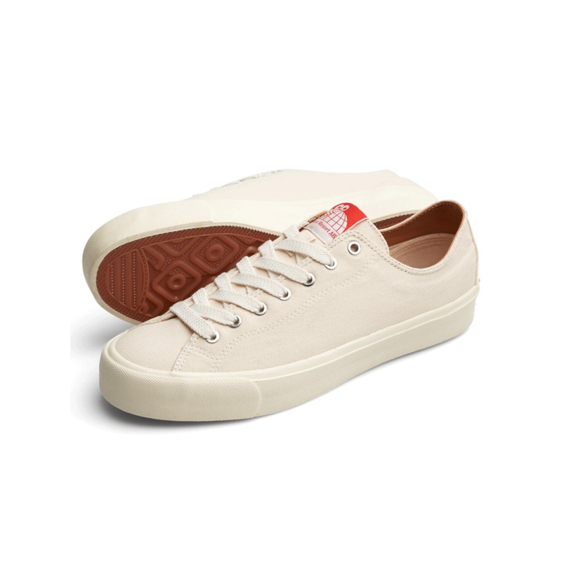 VM003-Lo Canvas White/White is a casual un-padded silhouette, and it also has the hidden rubber reinforcements between the upper and lining. 100% Vegan friendly.