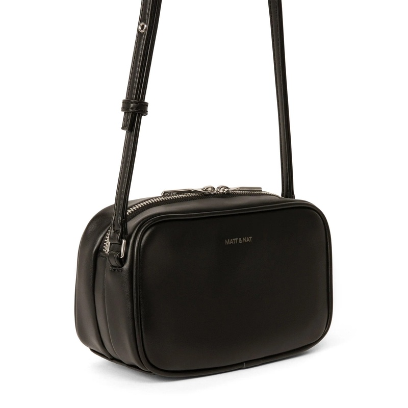 Crossbody bag with an adjustable strap, zipper closure at the main compartment, and an exterior back slip pocket.