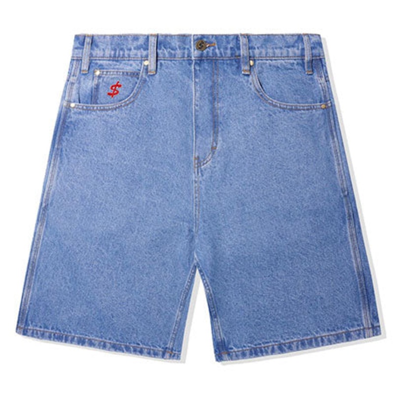 aggy Denim Shorts, Contrast Gold Stitching, Embroidered Logo On Front Coin Pocket, Embroidery Across Both Back Pockets, Brass Logo Button With Zip Fly Closure, Drawstring On Internal Waist Band, PU Label On Back Waist Band.
