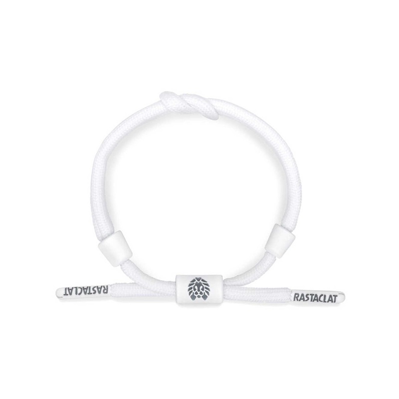 ALL WHITE EVERYTHING! WE HAD TO MAKE AN ALL WHITE KNOTACLAT! THIS BRACELET IS A SLEEK, SINGLE-KNOT POLYESTER BAND REINFORCED BY WHITE RUBBERIZED HARDWARE AND GREY LOGOS.