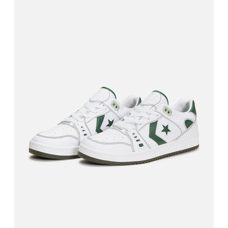 Smooth leatherupper with rubber ollie bumps and a white cupsole.