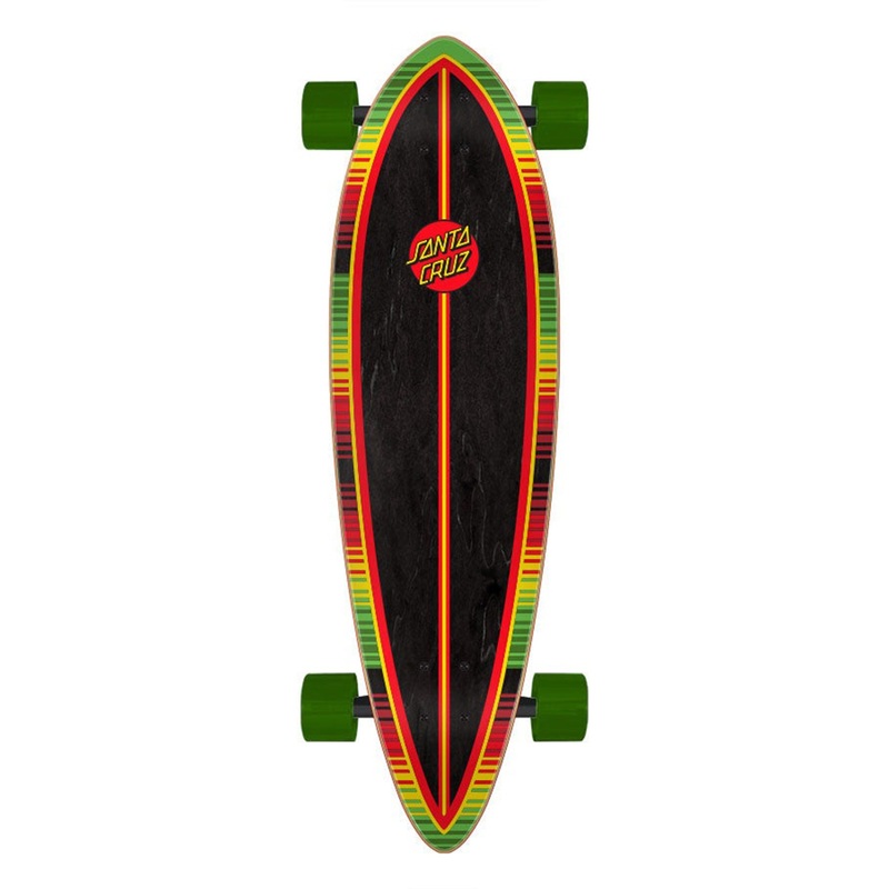 Santa Cruz Skateboards Serape Dot Pintail Longboard Cruzer featuring updated, smaller pintail shape on 9 ply deck with Bullet 160mm reverse kingpin trucks and Santa Cruz branded 60mm 78a Slimeballs wheels.