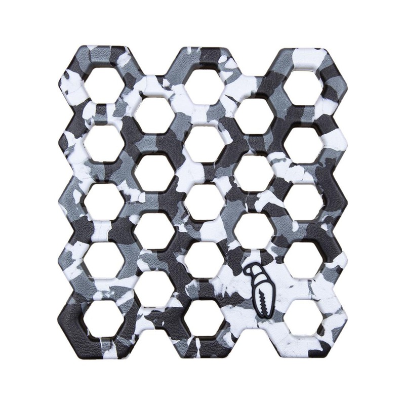 Stick this large format foam traction to your topsheet and lure your slippery boot into its grippy grasp. Whether you have big feet, a big board, or just big plans, This oversized trap will catch any size boot that comes its way. Inspired by the proven pattern of Maryland-style chicken wire traps of the Chesapeake Bay. Boot treads go in, but they dont come out.