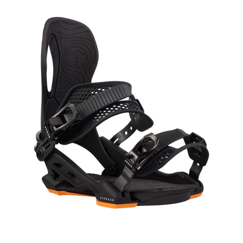 The Cypress is Arbor’s highest-end freeride-focused men’s snowboard binding designed for all-level all-mountain riding. It features a 30% fiberglass System X baseplate, adjustable heel cup, asymmetrical freeride-focused highbacks, and plant-based BioStrap.