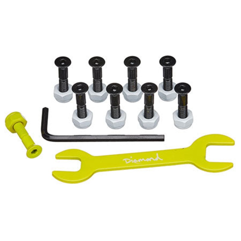 Comes with eight (8) regular black bolts and one (1) yellow bolt with nine (9) nuts total. Allen key included.