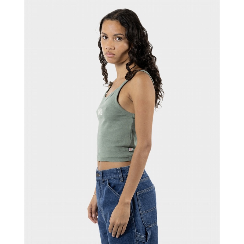 Women’s Dickies cropped singlet featuring the Longview logo embroidered.