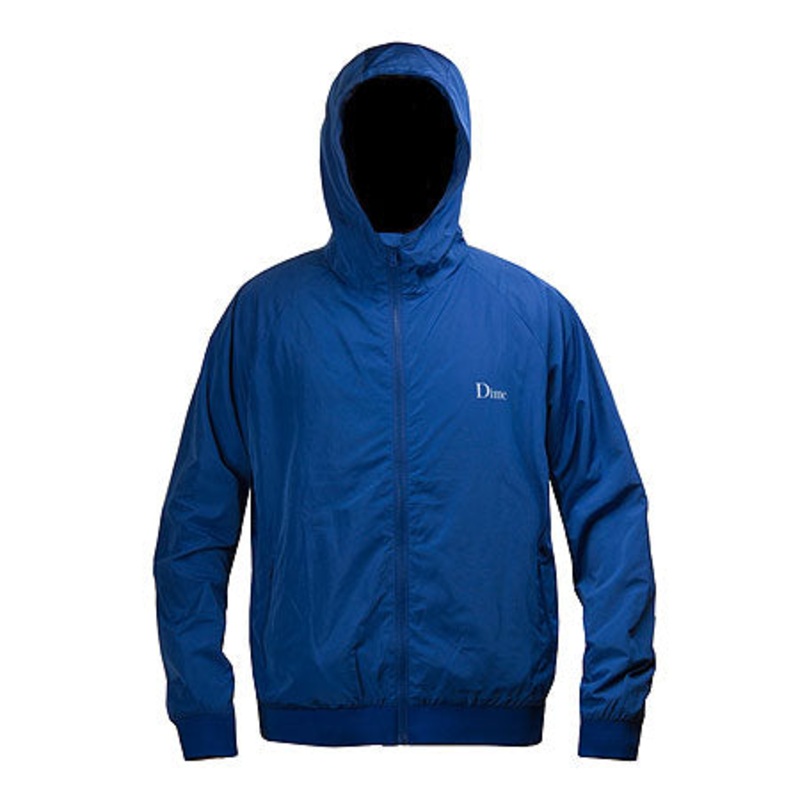 The Dime Classic Logo Zip-Up Hooded Windbreaker Jacket is a premium windbreaker jacket complete with 2 side pockets, elastic waist and cuffs, and full zip closure,