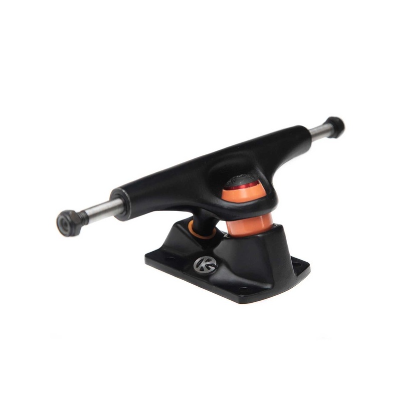 The GrindKing Disruptor leads the way in performance and innovation! This truck will take your grinds to the next level by providing smoother and longer grinds without kingpin hang ups. The curved edge on the baseplate will help keep your board from breaking .