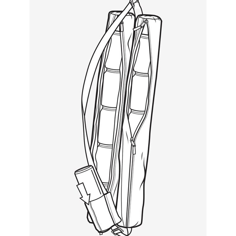 This liquid lunch box stores a vertical stack of cold ones in the two insulated sleeves, plus a bonus can on the koozie-equipped shoulder strap.
