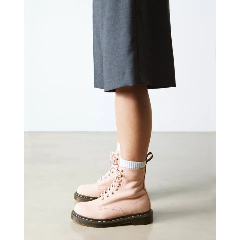 The 1460 8-eye boot is the Original Dr. Martens boot, born 1st April 1960 and named after the date. Known for its signature yellow welt stitching, grooved air-cushioned sole, and signed heel loop, it started at the feet of postal workers before it found its way to headline stages worldwide. We’ve made this super-soft version of the classic 8-eye boot from Milled Nubuck for texture and comfort from the first wear.