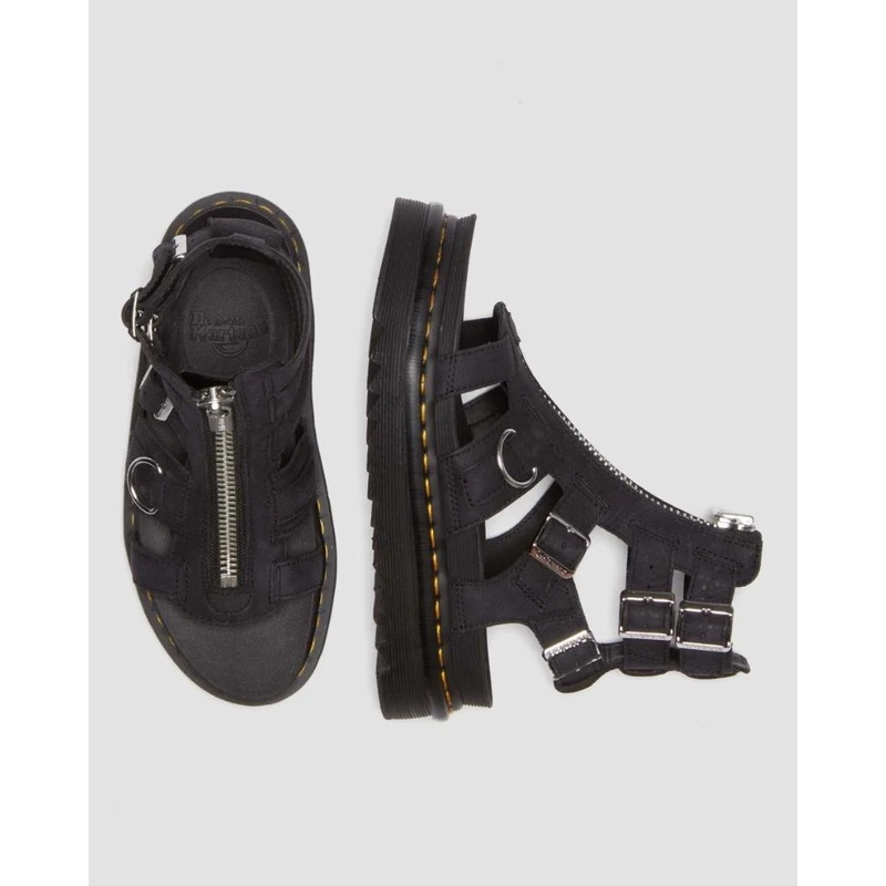 For the bold. The Olson is a hard-hitting gladiator silhouette punched with shiny silver buckles and a matching ring pull a in tribute to our heritage of customisation. Crafted from Tumbled Nubuck leather, the sandals are welted on our lighter-weight Zebrilus sole held in place with our unmistakable yellow welt stitching. They have a front zip and four adjustable buckles to secure the fit alongside our signature yellow scripted heel loop. Are you up to it?
