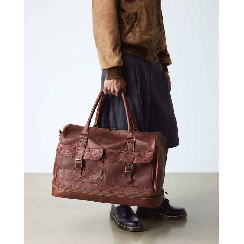 Shaped to take it all. The Weekender bag is our biggest silhouette now in tumbled Ambassador leather that relaxes with wear. Alongside a large inner compartment, the bag features two front pockets and zippered bottom storage. Twin top handles make for easy picking up and putting down, or you can use the removable crossbody strap. Antique brass hardware features across the bag, including metallic feet for elevation when stationary.