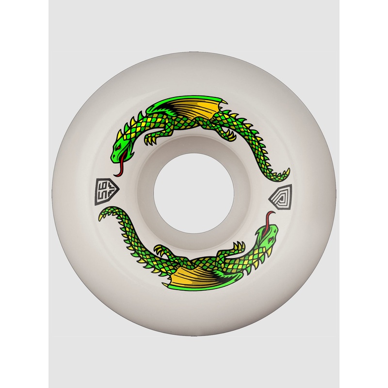 About Dragon Formula: The amazing new Dragon Formula (DF) Urethane used to create these wheels is another industry leading innovation from Powell Peralta. DF-93A Dragons will not only roll over rough terrain, but also grip and slide like 99A and 101A wheels do, so that you can do all your normal tricks and more on the greater range of skate terrains made skateable by its softer 93A hardness.