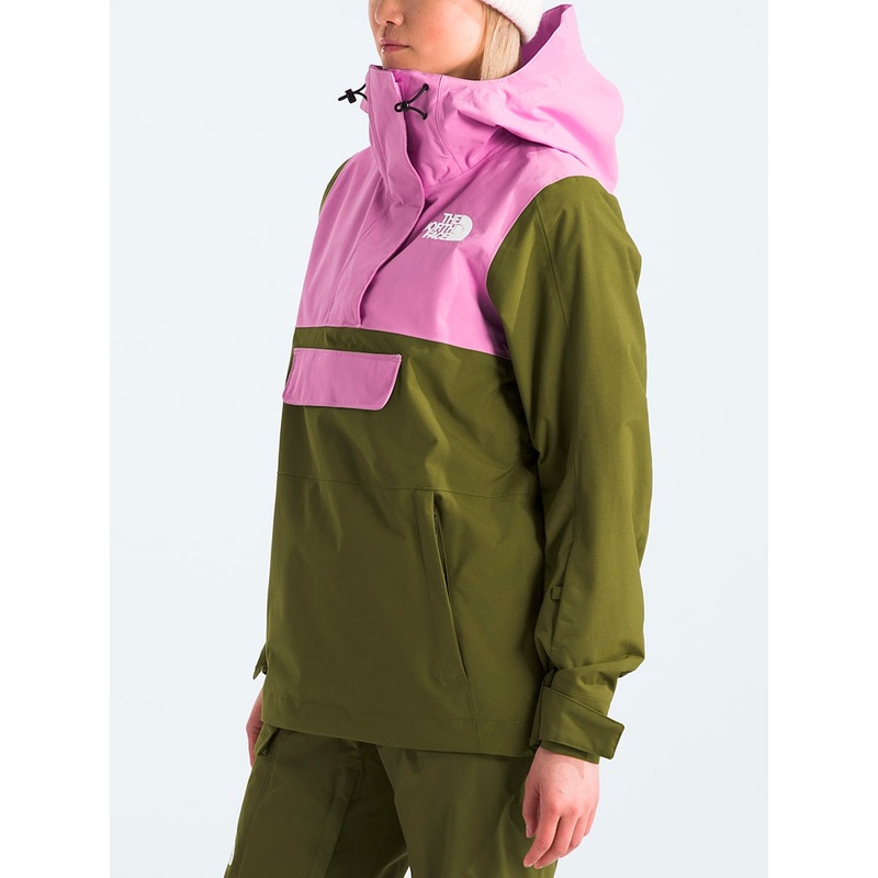 The Womens Driftview Anorak uses a waterproof, seam-sealed DryVent fabric and an attached, helmet-compatible hood for full on-mountain coverage. Stacked kangaroo pockets provide on-the-go storage, and the side entry design makes it easy to remove when back at the lodge.