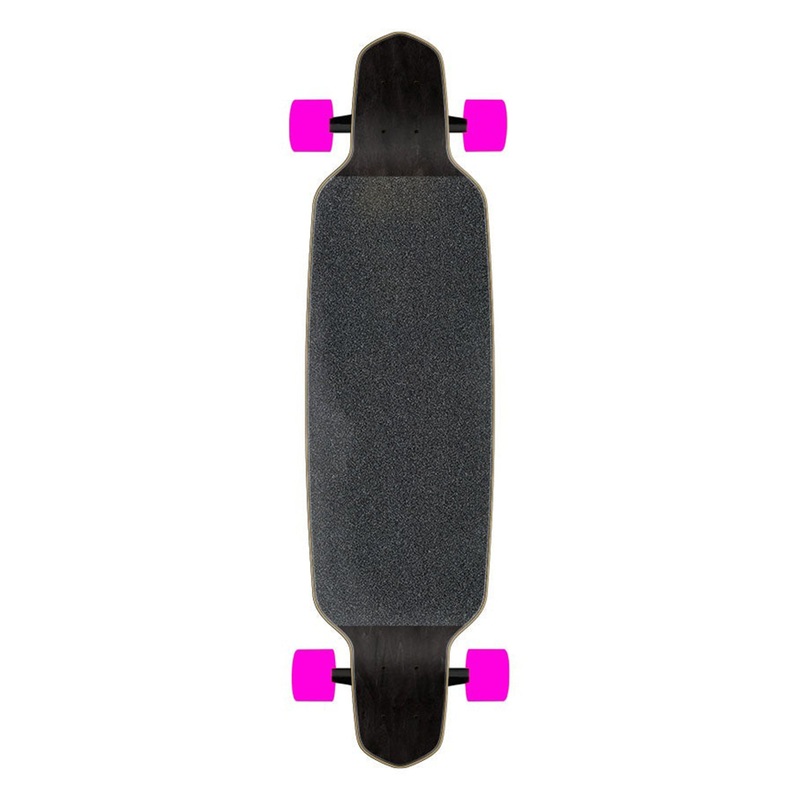 Santa Cruz Skateboards Split Hand Dropdown Longboard Cruzer with updated, modern medium sized drop down shape with routed wheel wells, new 160mm Bullet reverse kingpin downhill trucks and 66mm Santa Cruz branded Slime Balls wheels.