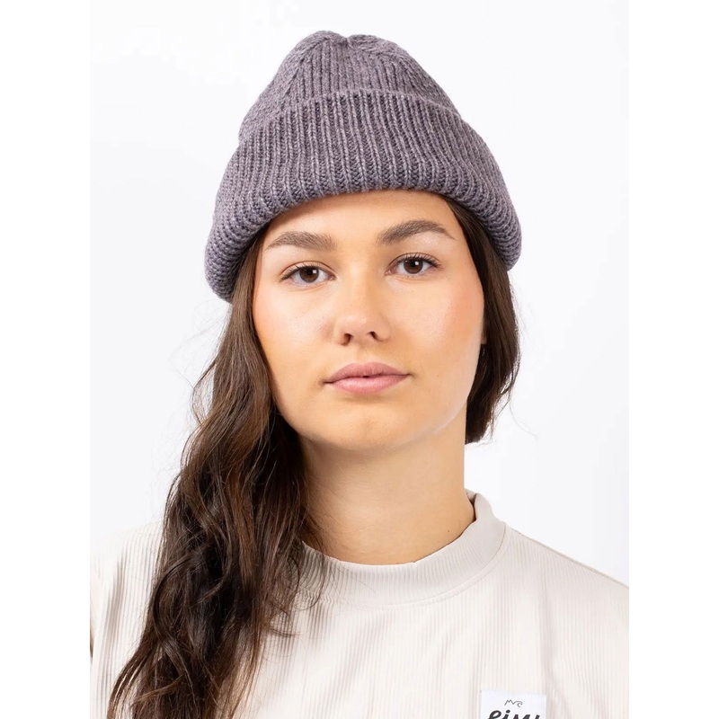 Ribbed, fluffy and oversized grey beanie made of woolmix for maxed out warmth and longevity. Can be double-folded to create a short rib beanie look. Thick, soft and warm, heavy gauge knit with no side seams, and sturdy woven label.
