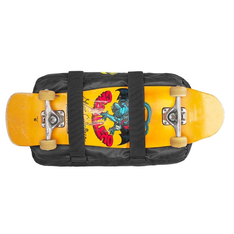 The Etnies Nomad Skateboard Duffle Bag in Black gives you enough spavce to carry around all your gear and it has straps on the bottom for attaching your board. Perfect for quick trips or travelling.