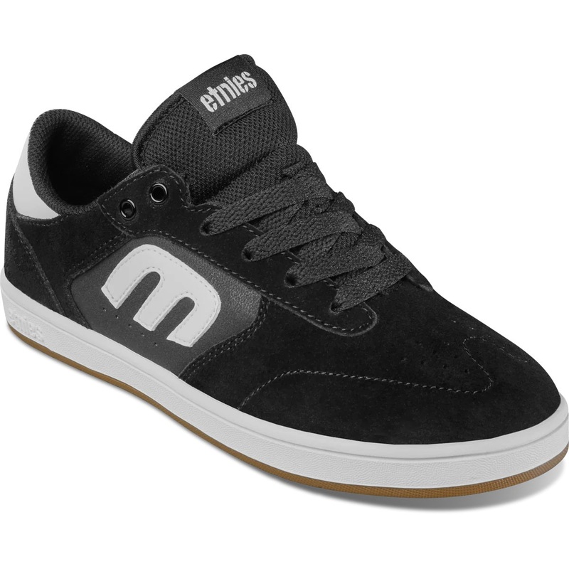 Pair of Etnies Windrow Kids Skate Shoes in Black, White and Gum.